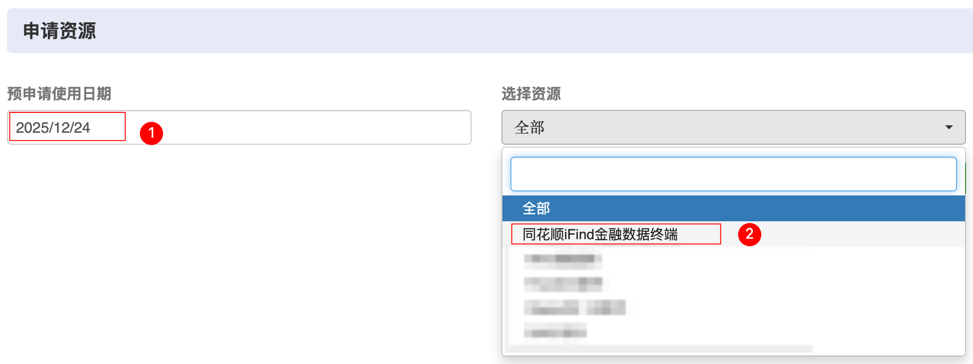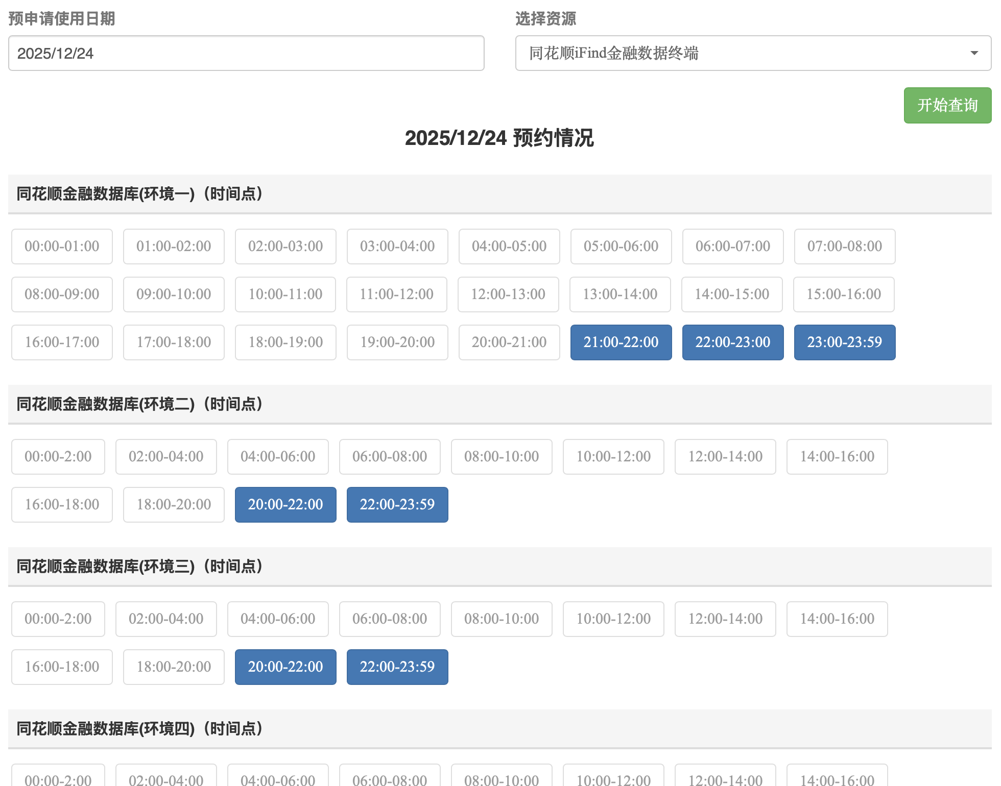 先选择预约使用日期,再选择预约资源,然后点击“开始查询”